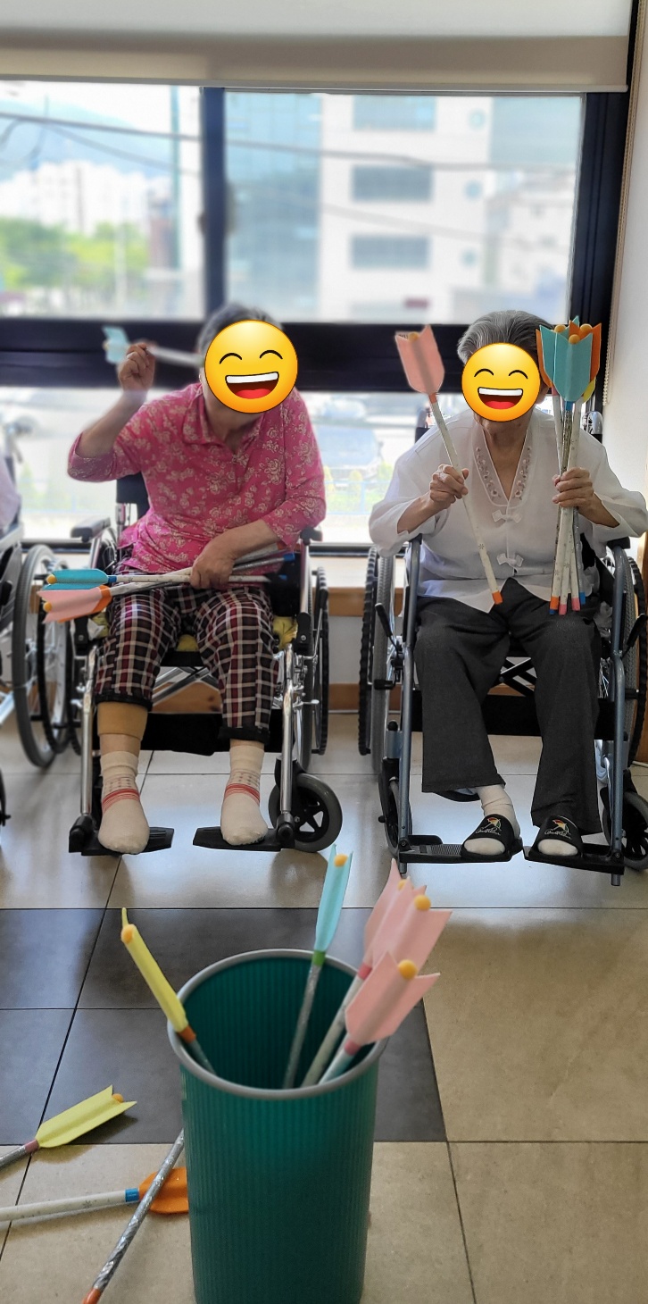 투호놀이에서는 집중하여 화살을 던지고 성공한 분들도 많아 자신감이 뿜뿜 .