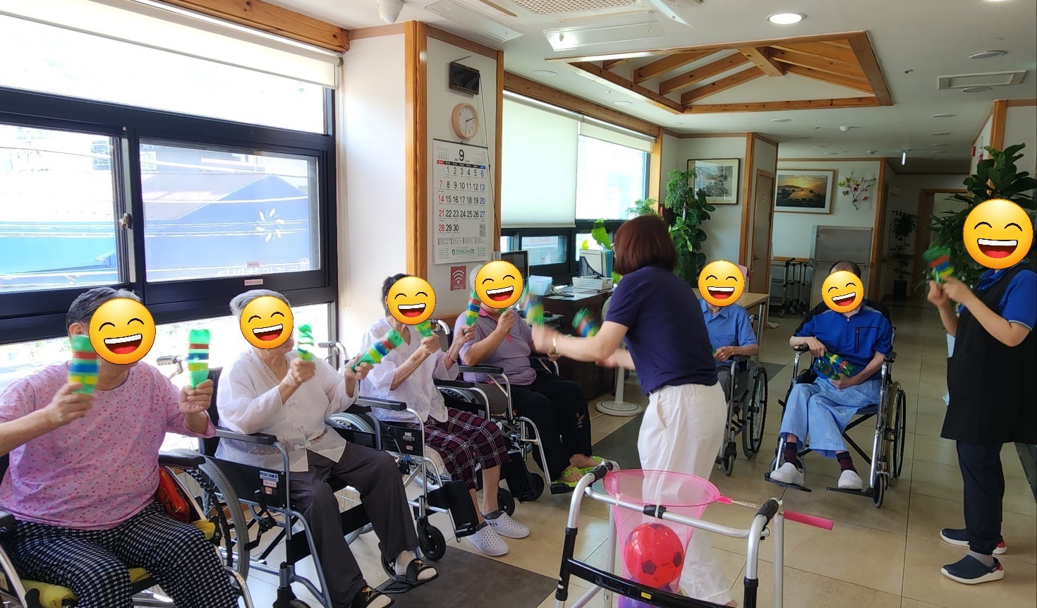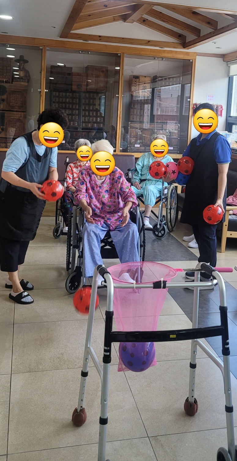 음료수병으로 직접 만드신 마라카스놀이를 하신 후 공 던지기를 통해 소소한 경쟁과 재미를 경험하셨습니다.