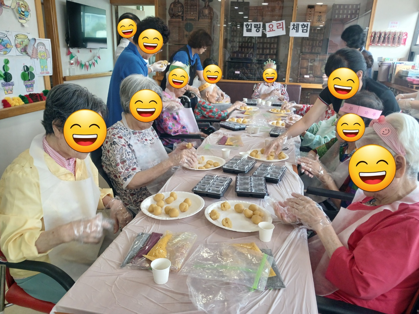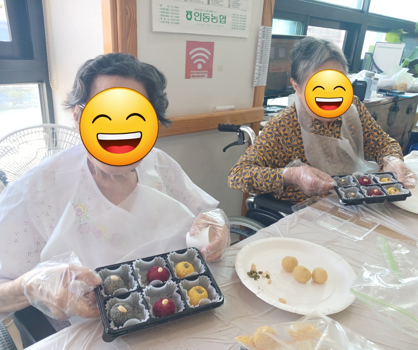 어르신들 안전를 위하여 찹쌀가루 대신  삶은고구마를 으깨 빚어