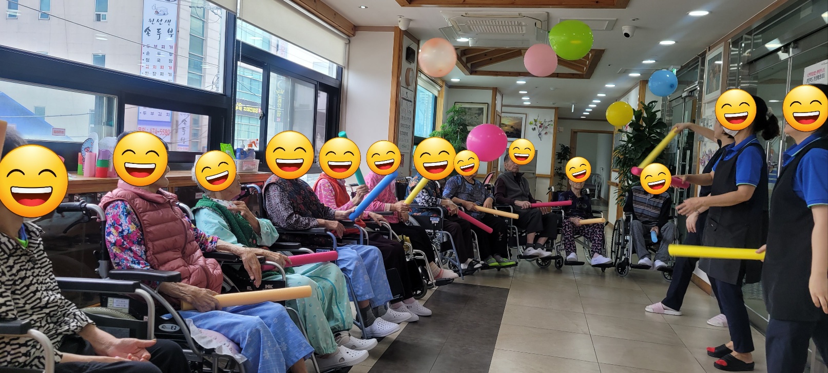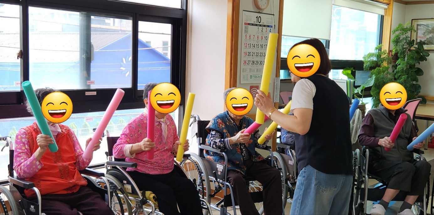 백업을 이용하여 음악에 맞춰 체조와  율동을 배우시고