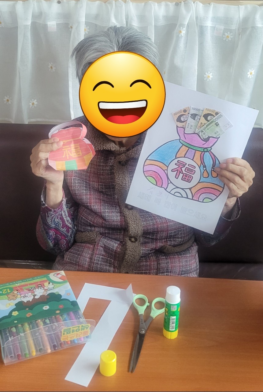 “복주머니를 색칠하고 종이돈을 오려 직접 넣어보며
